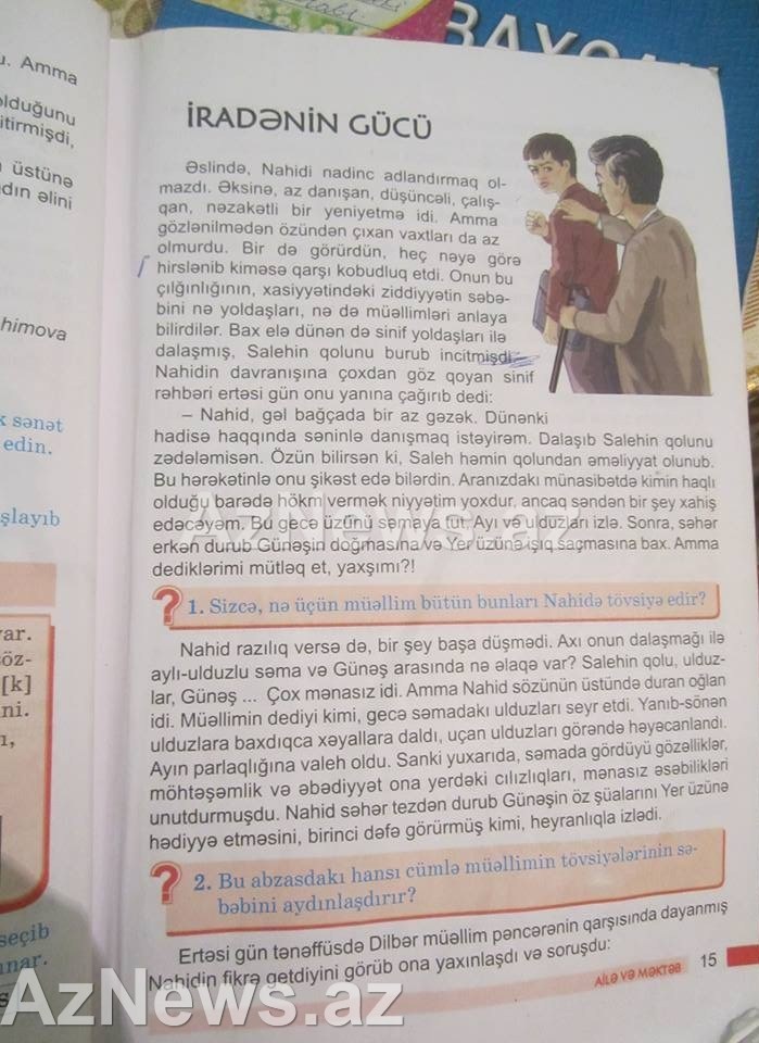 “İradənin gücü” adlı hekayədə Nahidə öyüd-nəsihət verən Dilbər müəllimin bığlı rəsmi ilə adının arasında çox böyük ziddiyət var. Hekayə ümumilikdə heç bir məna ifadə etmir. Məntiqdən kənar hekayənin müəlliflərinin azyaşlılara təqdim etdiyi müəllimə qadın adının verilməsi təəccüb doğurur.