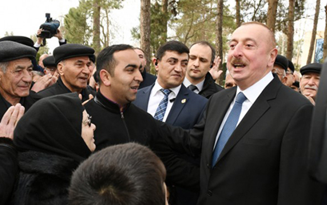 Əliyev Beyləqan sakinləriylə birgə mahnı oxudu