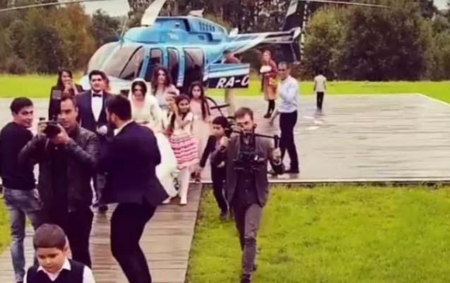 Azərbaycanlı bəylə gəlin toya helikopterlə gəldi
