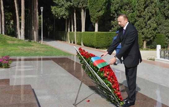 Prezidentlə xanımı Heydər Əliyevin məzarını ziyarət etdi-