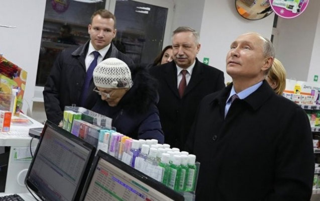 Aptekdə Putinin yanında dayanan qadın onu tanımayıb