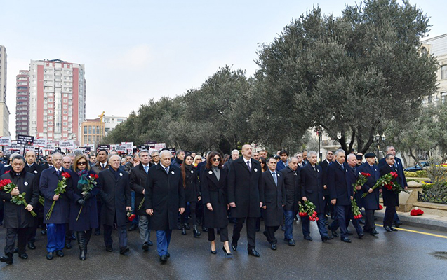 Rəsmilər Xocalı soyqırımı abidəsini ziyarət etdi