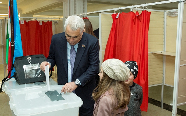 Cavid Qurbanov səsverməyə nəvələri ilə gəldi
