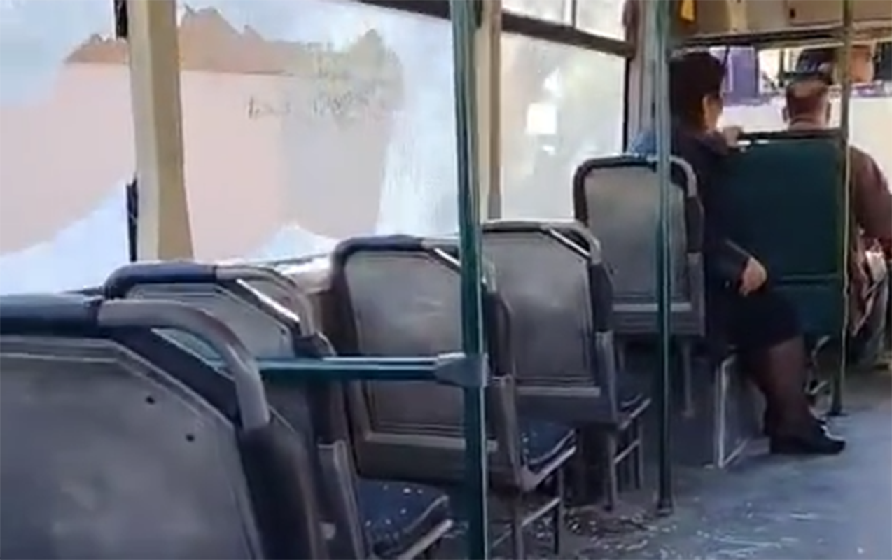 Sürücü avtobusu şüşələri qırıq vəziyyətdə idarə edib?