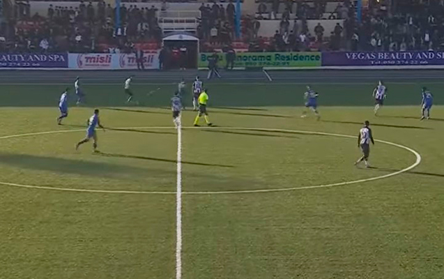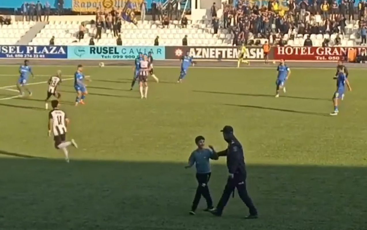 Yevlaxda azarkeş meydana girdi, hakimi oyunu saxlamadı