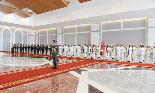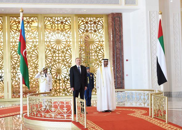 “Qafqazinfo” Azərtac-a istinadən xəbər verir ki, Abu Dabinin Prezident hava limanında dövlət başçısını Abu Dabinin Vəliəhdi, Birləşmiş Ərəb Əmirliklərinin Silahlı Qüvvələrinin Ali Baş Komandanının müavini Şeyx Məhəmməd Bin Zayed Əl Nəhyan və digər rəsmi şəxslər qarşılayıb. Sonra Abu Dabinin Prezident hava limanında Azərbaycan Respublikasının Prezidenti İlham Əliyevin rəsmi qarşılanma mərasimi olub.