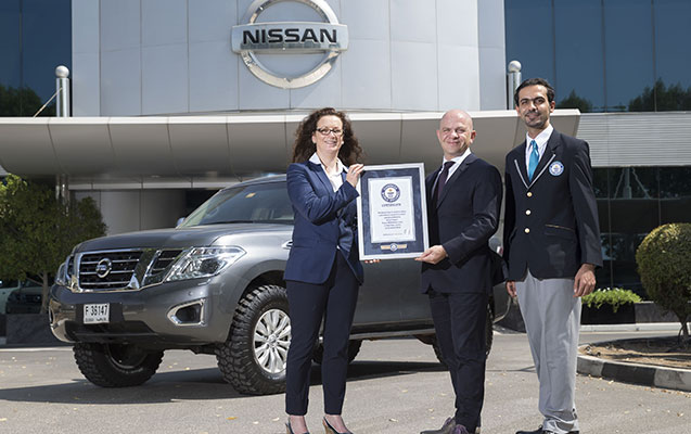 Yolsuzluq üzrə təlimçi 4.9 saniyəlik dünya rekordunu uğurla qazanmaq üçün Nissan Patrol avtomobilinin sükanı arxasında əyləşərək onu 100 metrlik qum pəpəsinə çıxarmağa nail oldu. Rekord qıracaq qədər qısa bir müddətə bu uğura imza atmaq Nissan Patrol avtomobilindəki yüksək qabaqcıl texnologiyanı və innovasiyanı göstərir.