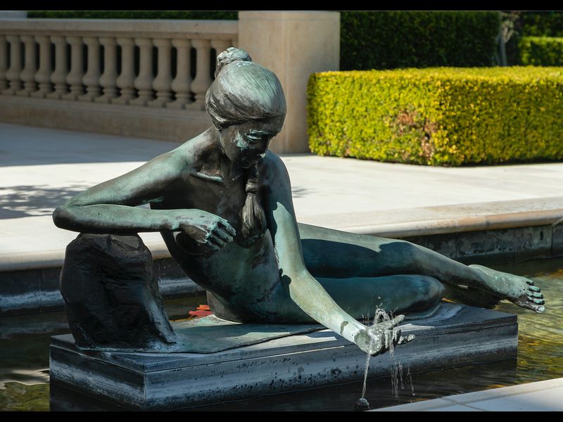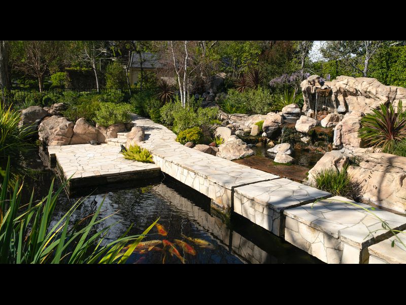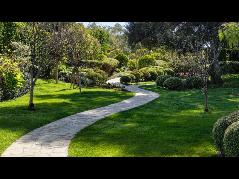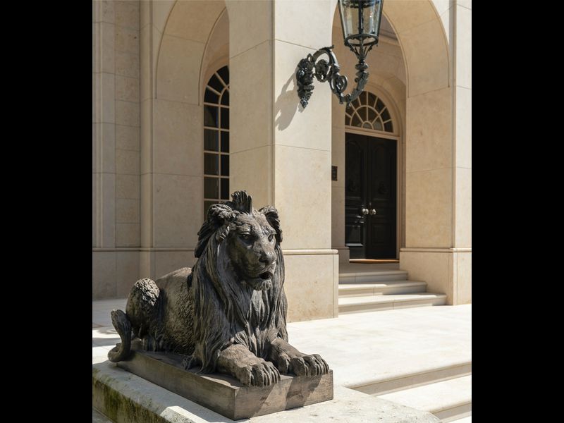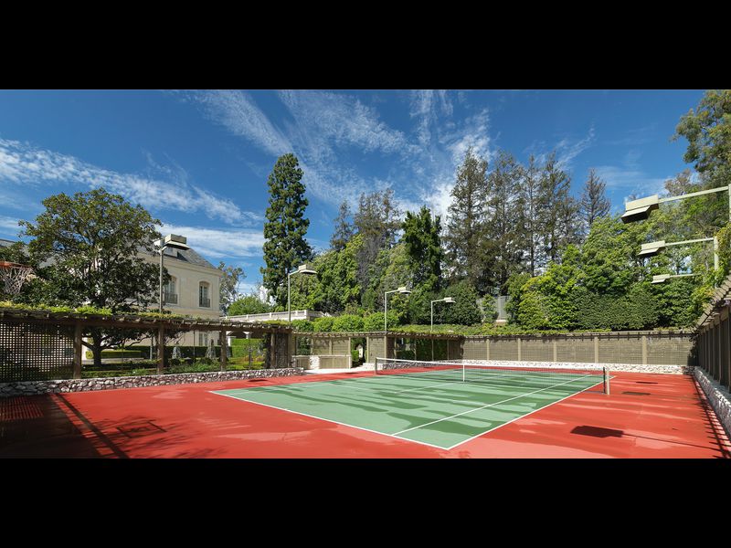 Ərazidə tennis kortu, futbol meydançası, açıq hovuz, istirahət zonası, qaraj, həmçinin, çox sayda ağac, kol və bağ heykəlləri var.