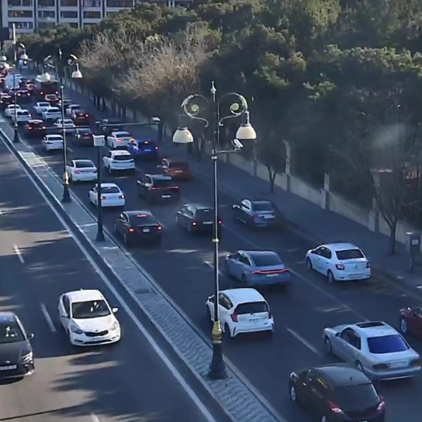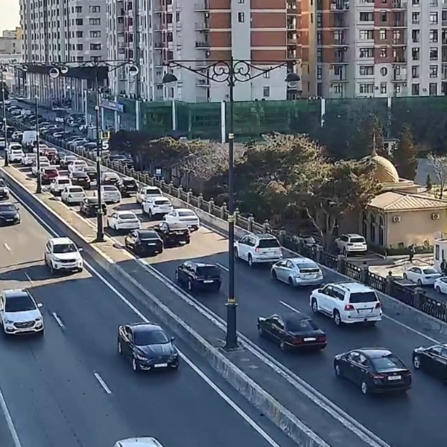 14. Üzeyir Hacıbəyli küçəsi, Azadlıq prospekti ilə kəsişməyə qədər sıxlıq müşahidə olunur.