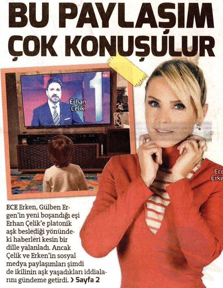 Hətta Ecenin ötən həftə sosial şəbəkələrdə paylaşdığı foto şübhələri daha da dərinləşdirib. Fotoda aktrisanın azyaşlı oğlu xəbərlər proqramını aparan Erhan Çeliki izləyir.
