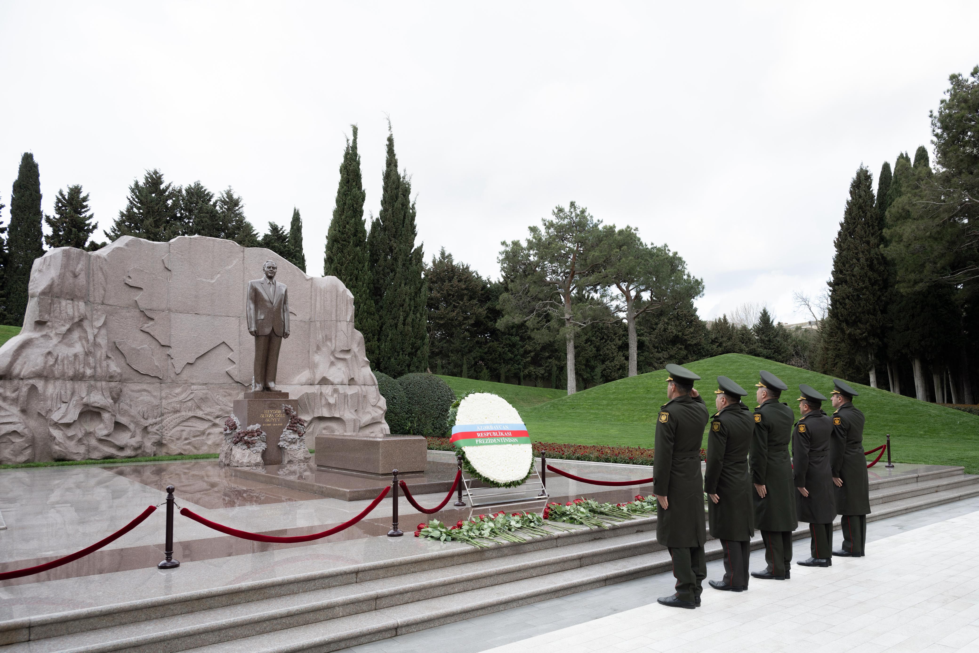 “Qafqazinfo” xəbər verir ki, bu münasibətlə daxili işlər naziri general-polkovnik Vilayət Eyvazov və hərbi qulluqçular Fəxri xiyabana gedərək Ulu Öndər Heydər Əliyevin xatirəsini ehtiramla yad ediblər.