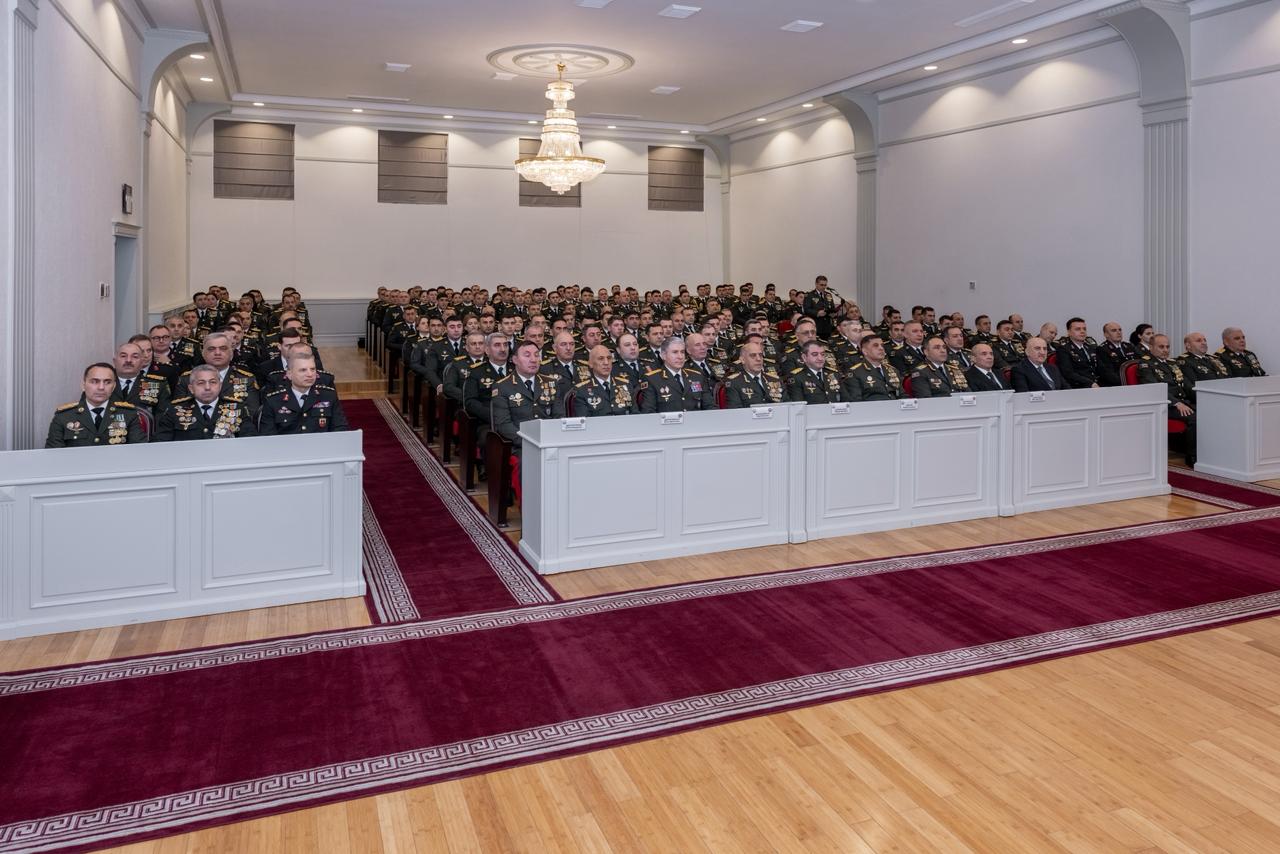 Sonra daxili işlər nazirinin müavini - daxili qoşunların komandanı general-leytenant Şahin Məmmədov və komandanın birinci müavini - Qərargah rəisi general-mayor Tofiq Hüseynov məruzə ilə çıxış ediblər.