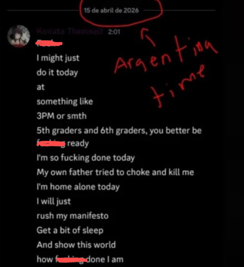 “Qafqazinfo” xəbər verir ki, qətliamı törədən 14 yaşlı İsa Aras Mersinlinin hadisədən bir gün əvvəl VPN vasitəsilə məşhur “Discord” tətbiqində hücumu açıq şəkildə anons etdiyi məlum olub.