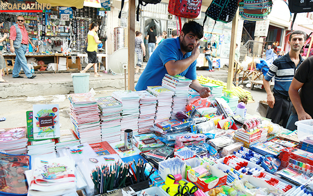 “12 vərəqli dəftərin mayası keçən il 5 qəpik idi, 7-8 qəpiyə satırdıq. Bu il isə 10,5 qəpik mayasıdır, 12 qəpiyə satırıq. Səhərdən neçə nəfərə 10 qəpiyə satmışam. Neyləyim, almırlar. 40 vərəqli dəftər keçən il 20 qəpik idi, bu il 35 qəpik olub. Qələmlər 10 qəpik qalxıb. Rəngli qələmlərin qiyməti isə 3 manat olub. Bax, bu ailə bir uşaq üçün lazım olan ləvazımatlara 60 manat verib çıxdı. Onlar da şikayətlənir, əllərində pul yoxdur. Ancaq bizim də edə biləcəyimiz bir şey yoxdur ki, edək”.