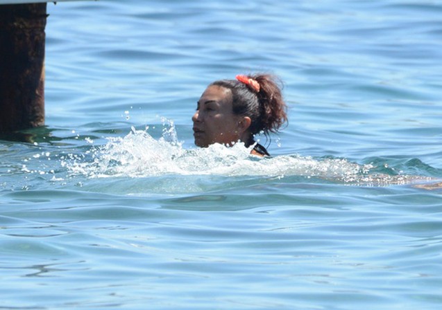 Aktrisa dostları ilə birgə tətilə gedib, o, çimərlik geyimində kameralara tuş gəlib.