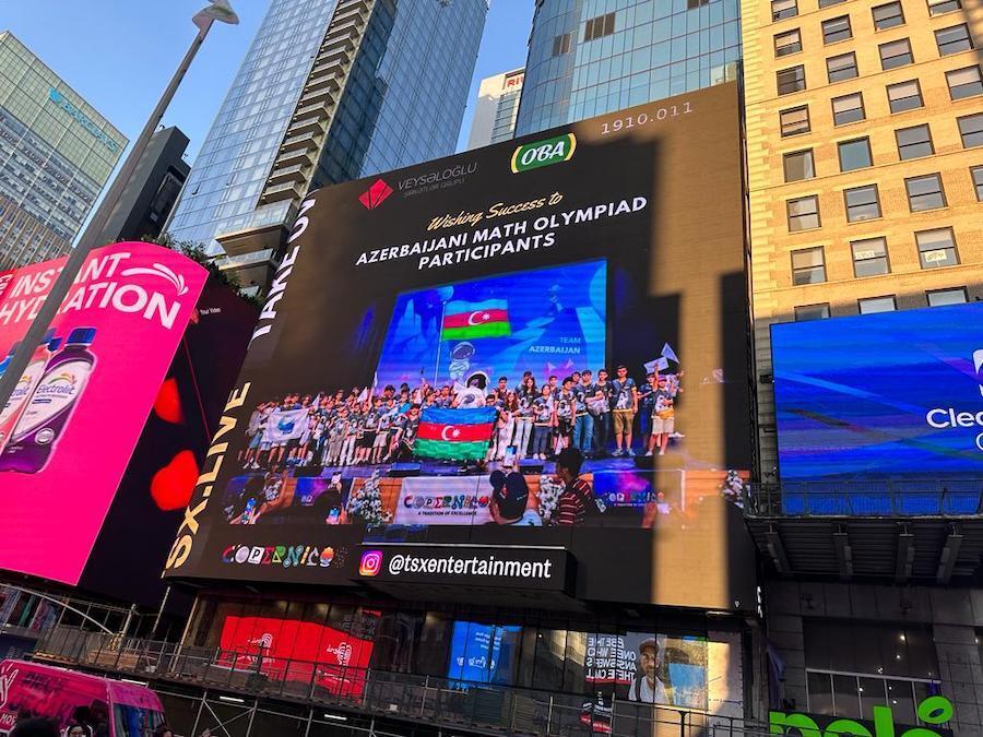 Əlamətdar səyahətə çıxan 60 azərbaycanlı istedadı məşhur Tayms meydanında xoş sürpriz qarşılayıb. Veysəloğlu Şirkətlər Qrupu və ona daxil olan “OBA” marketlər şəbəkəsinin təşkilatçılığı ilə gənc istedadların olimpiada gedişatında çəkilmiş fotoları Tayms meydanında yerləşən ekranlardan birində yayımlanıb. Həmin an riyaziyyatçılarımız baş verən hadisə qarşısında öz təəccüb və sevinclərini gizlədə bilməyiblər.