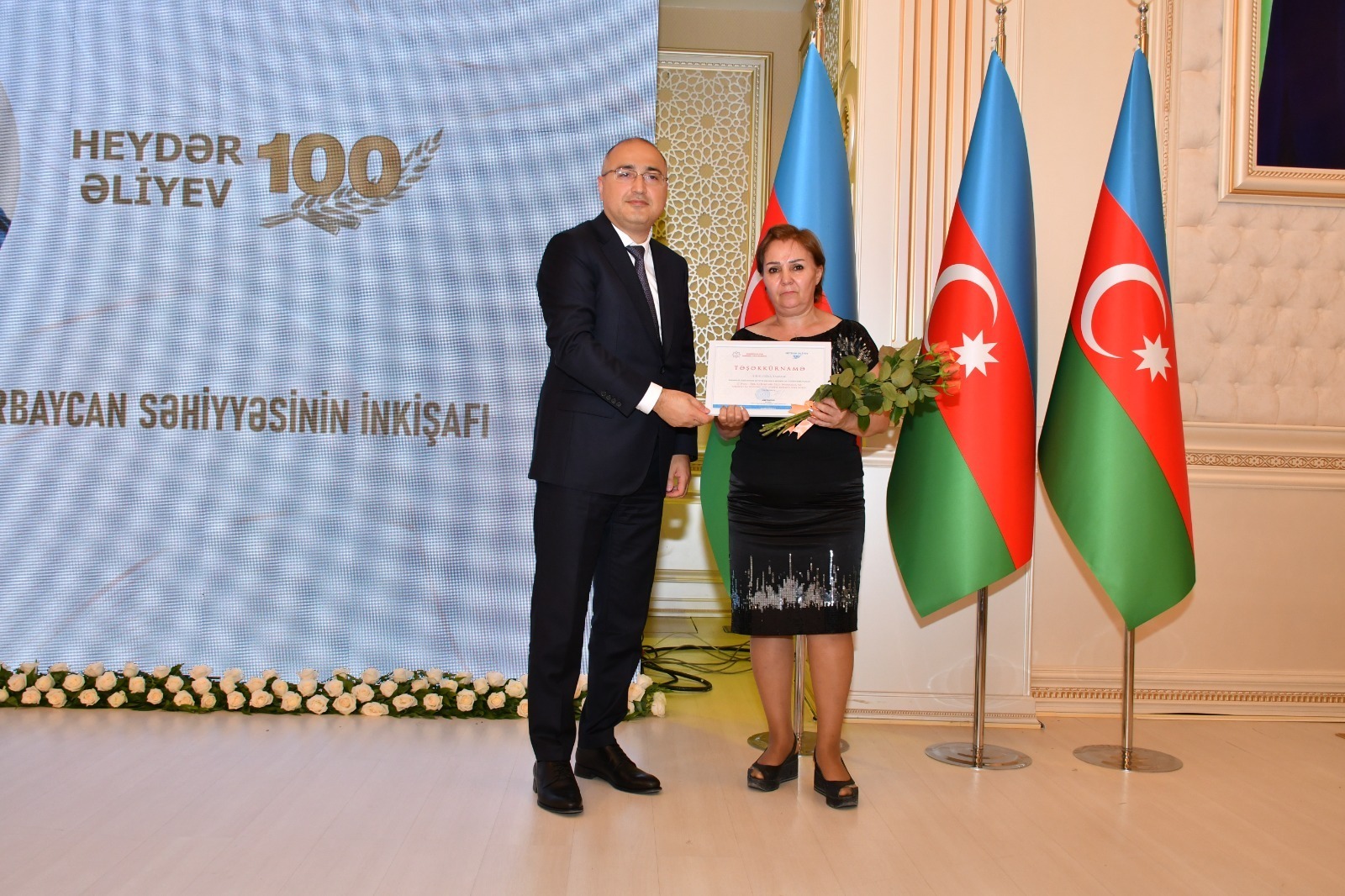 “17 iyun - Tibb İşçilərinin Peşə Bayramı Günü” münasibətilə rayon Mərkəzi Xəstəxanasının əməkdaşı olan şəhid ailələrinin üzvləri – şəhid baş leytenant, “Rəşadət” ordeni, “Vətən uğrunda”, “Cəbrayılın azad olunmasına görə” və “Cəsur döyüşçü” medalları ilə təltif edilmiş Röyal Ələkbərovun anası Faidə Ələkbərova və şəhid baş leytenant, “Vətən uğrunda”, “Cəbrayılın azad olunmasına görə”, “Xocavəndin azad olunmasına görə” medalları ilə təltif edilmiş İlqar Vəliyevin həyat yoldaşı Təhminə Vəliyeva tibb sahəsində fədakar xidmətlərinə, o cümlədən ulu öndər Heydər Əliyevin 100 illik yubileyi ilə əlaqədar keçirilən tədbirlərdə fəal iştiraklarına görə Abşeron Rayon İcra Hakimiyyəti tərəfindən Fəxri Fərmanla təltif edilərək peşə bayramları təbrik olunub, gələcək işlərində uğurlar arzulanıb.