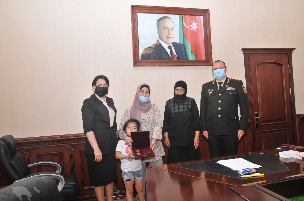 Bundan sonra şəhid ailələrinə medal və ordenlər təqdim olunub. Belə ki, kapitan Musibov Veysəl Yadullayeviçin “Vətən Müharibəsi Qəhrəmanı” (ölümündən sonra), mayor Hüseynov Rəhim Qədir oğlunun “Qarabağ Ordeni” (ölümündən sonra), kapitan Mustafayev Nurlan Hamlet oğlunun “Azərbaycan Bayrağı” Ordeni və “Vətən uğrunda” medalı (ölümündən sonra) ailələrinə təhvil verilib.