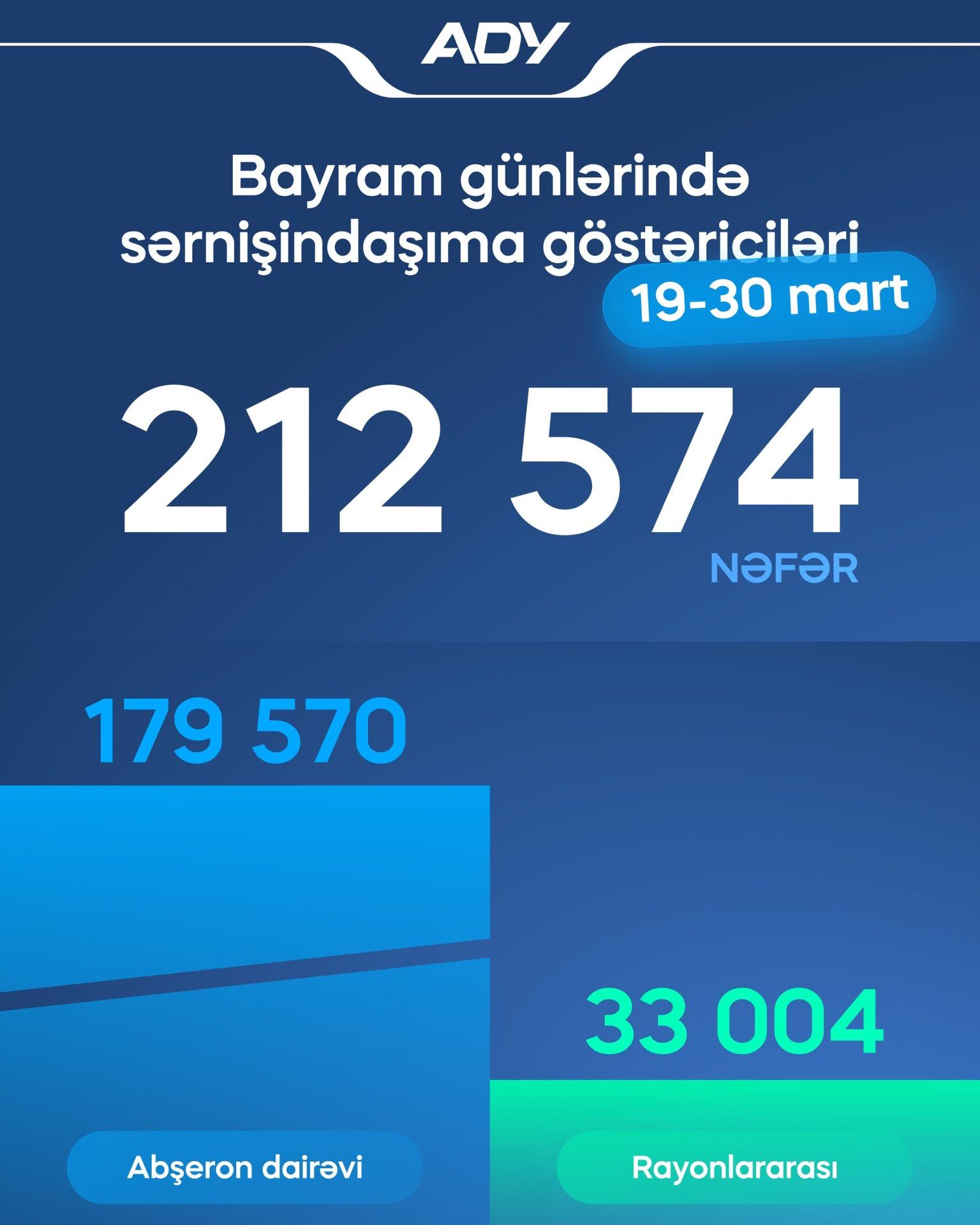 “Azərbaycan Dəmir Yolları” QSC (ADY) 19-30 mart tarixlərində 212 mindən çox sərnişin daşıyıb.