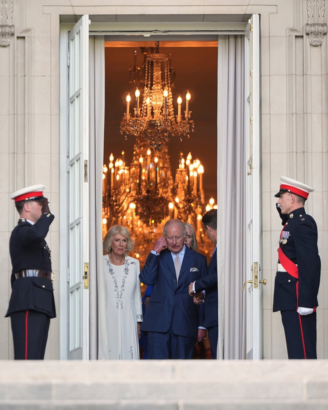 Kral ailəsinin Ağ Evə gəlişi Cənub Qapısında rəsmi hərbi mərasimlə başlayıb. Daha sonra tərəflər diplomatik gündəliyin ilkin müzakirəsi üçün ənənəvi çay süfrəsində bir araya gəliblər.