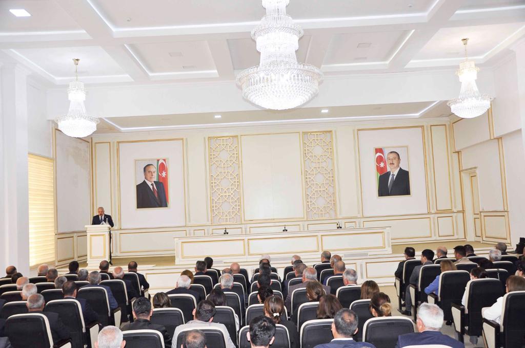 Tədbirdə məruzə ilə çıxış edən Rayon İcra Hakimiyyətinin başçısı Vaqif Həsənov və digər natiqlər Azərbaycan xalqının Ümummilli lideri Heydər Əliyevin fədakar əməyi, qətiyyəti, möhkəm siyasi iradəsi sayəsində müasir Azərbaycanın dövlətçiliyinin siyasi, iqtisadi əsaslarının yaradılmasından, müstəqil Azərbaycanın dünya məkanında öz layiqli yerini tutmasından, 1969-cu ildə Heydər Əliyevin Azərbaycana rəhbərlik etməsi ilə başlanan şərəfli missiya sayəsində respublikamızın ittifaqın aparıcı dövlətlərindən birinə çevrilməsindən söhbət açmış, 1993-2003-cü illərdə Ulu öndərin hakimiyyətdə olduğu dövrdə ölkəmizin bütün sahələrində baş vermiş müsbət dəyişikliklərdən, beynəlxalq aləmdə nüfuzunun artmasından bəhs ediblər.