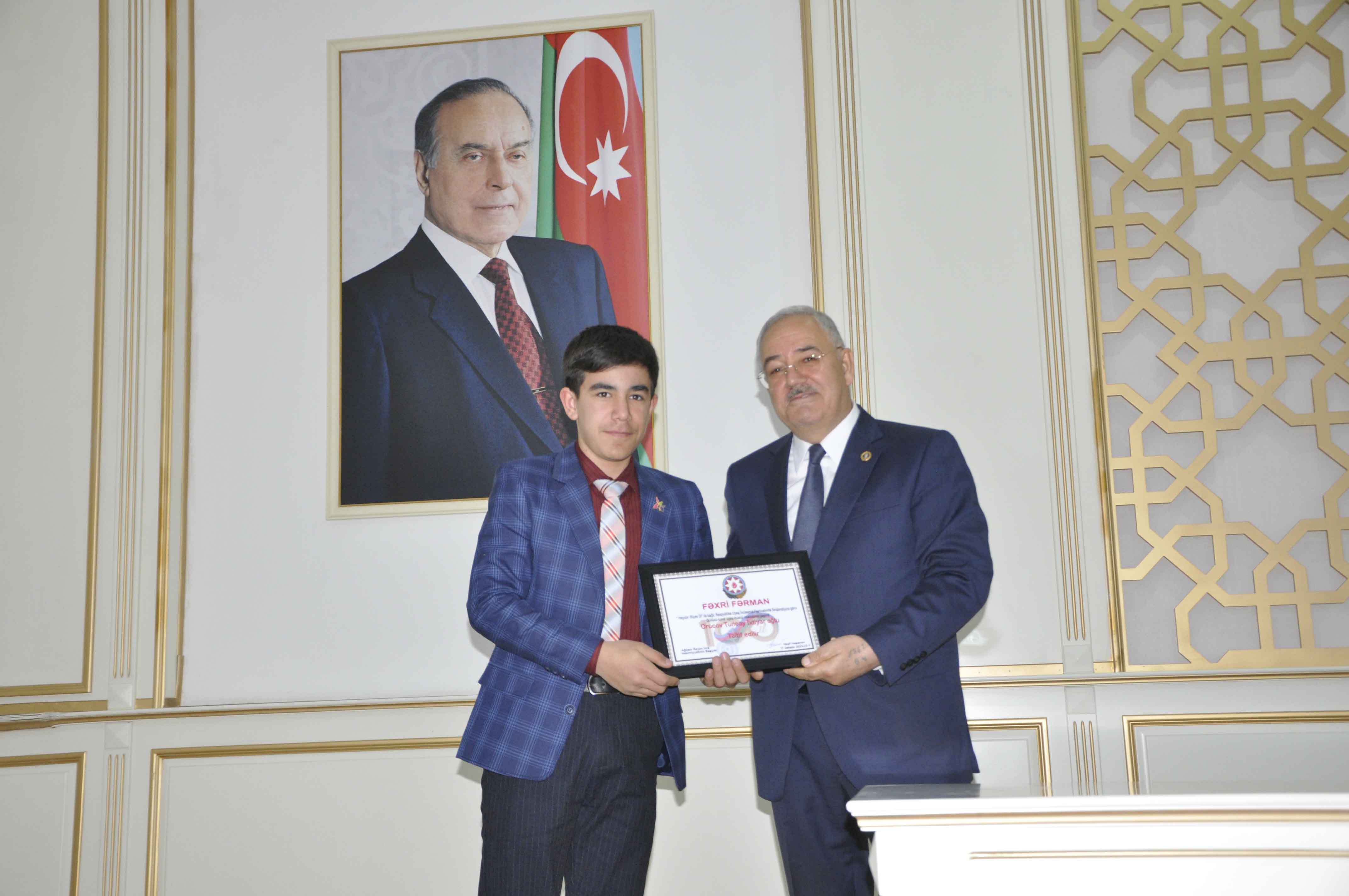 Tədbirin sonunda “Heydər Əliyev İli” çərçivəsində Ağdam rayonunda keçirilmiş yaradıcılıq festivallarının və müxtəlif nominasiyalı müsabiqələrin qalibləri Rayon İcra Hakimiyyətinin başçısı Vaqif Həsənov və Yeni Azərbaycan Partiyası Ağdam Rayon Təşkilatının sədri Mansur Quliyev tərəfindən Fəxri fərmanlarla təltif ediliblər.