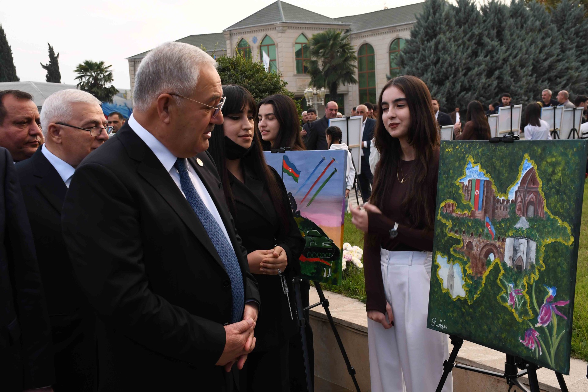 Tədbir iştirakçıları əvvəlcə zəfərin 5-ci ilinə həsr olunmuş rəsm əsərlərindən ibarət sərgi ilə tanış olublar.