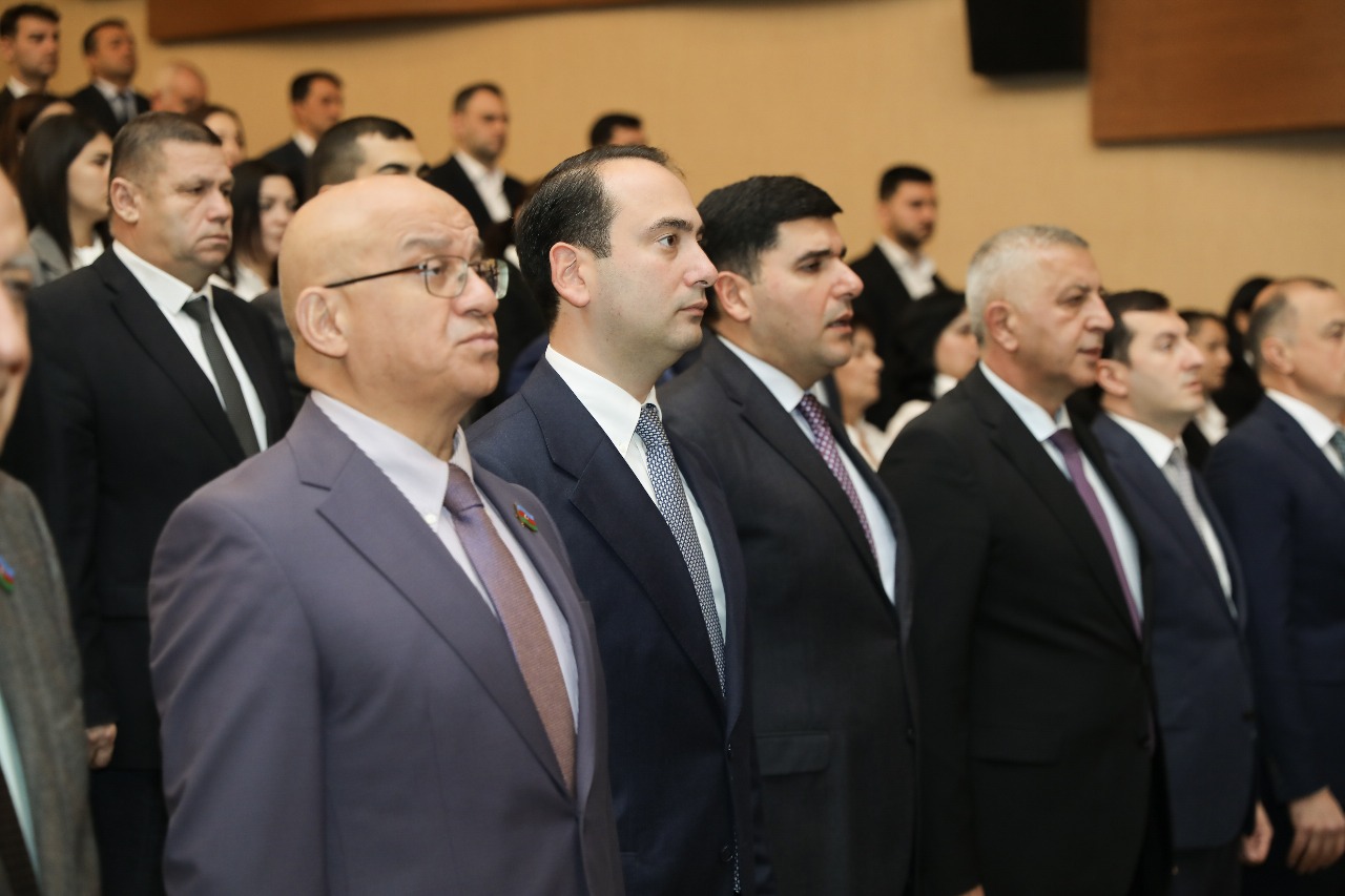 Heydər Əliyev Mərkəzində davam etdirilən tədbirdə əvvəlcə Dövlət himni səsləndirilib, Ümummilli Lider Heydər Əliyevin və Vətən uğrunda canından keçmiş şəhidlərimizin əziz xatirəsi bir dəqiqəlik sükutla yad edilib.