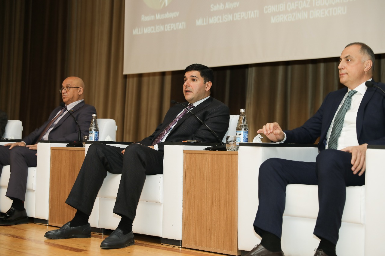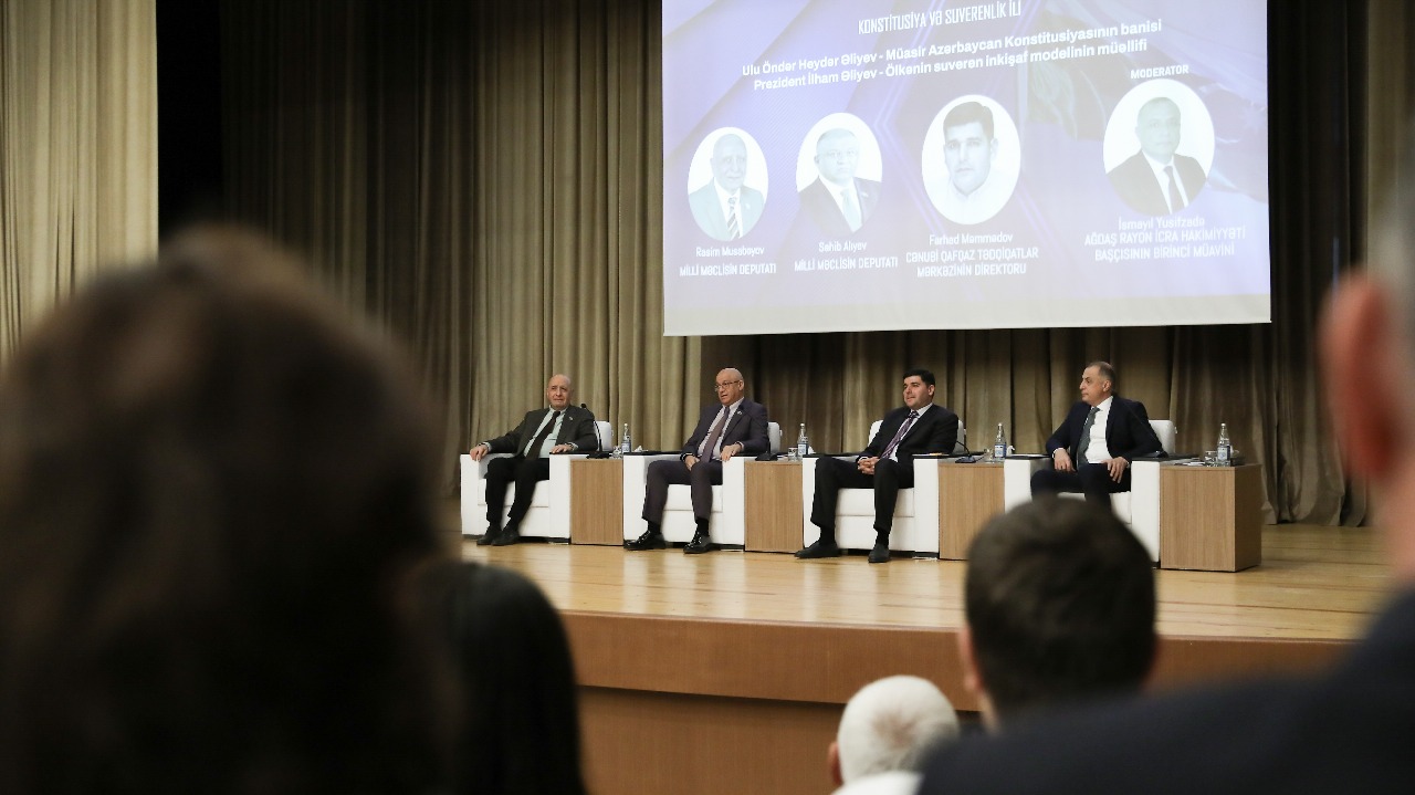 “Konstitusiya və Suverenlik İli: Ulu Öndər Heydər Əliyev – müasir Azərbaycan Konstitusiyasının banisi, Prezident İlham Əliyev – ölkənin suveren inkişaf modelinin müəllifi” mövzusuna həsr olunan panel müzakirələrinə Ağdaş Rayon İcra Hakimiyyəti başçısının birinci müavini İsmayıl Yusifzadə moderatorluq edib.