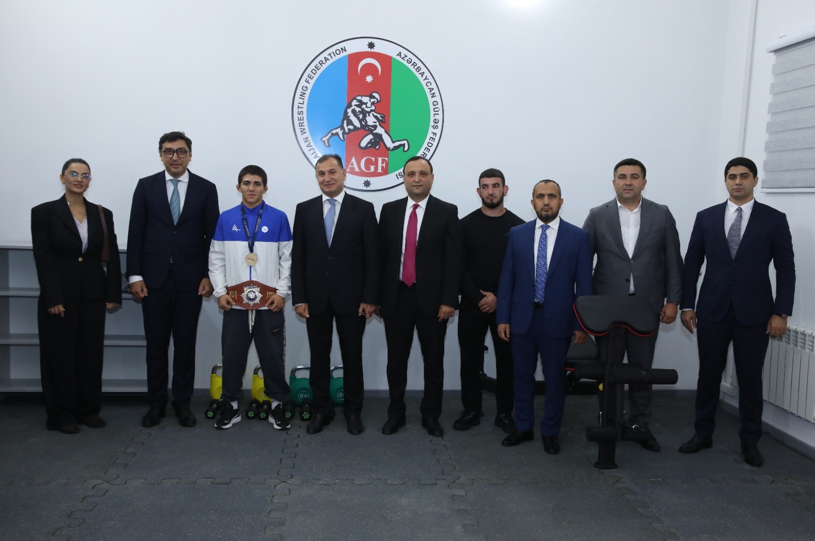 “Qafqazinfo” xəbər verir ki, gənclər və idman naziri Fərid Qayıbov, Milli Məclisin Gənclər və idman komitəsinin sədri Şahin İsmayılov, komitənin üzvləri, Azərbaycan Həmkarlar İttifaqları Konfederasiyasının, eləcə də üzv və tabe təşkilatların rəhbərləri, idmançılar və məşqçilər idman zalında yaradılmış şəraitlə tanış olublar.