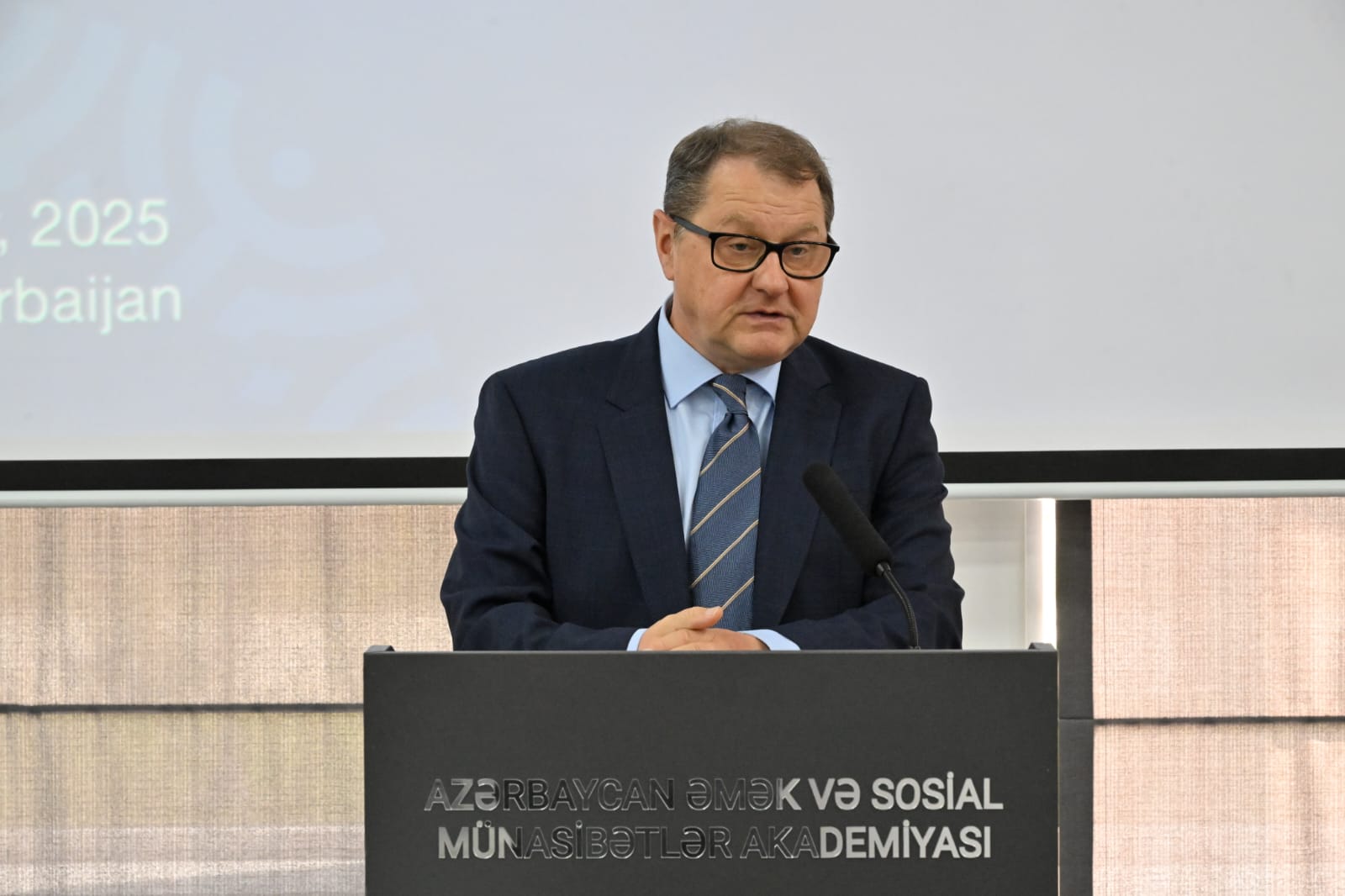 Sonra Akademiyanın İxtisasartırma və Kadrların İnkişafı Mərkəzində professor-müəllim heyətinin iştirakı ilə tədbir keçirilib. BƏT-in Azərbaycandakı milli əlaqələndiricisi Yaşar Həmzəyev çıxış edərək iki qurum arasında münasibətlərin inkişafının əhəmiyyətindən bəhs edib, Azərbaycanda əmək hüquqlarının müdafiəsi sahəsində beynəlxalq həmkarlar ittifaqı təşkilatlarının qərar və tövsiyələrinə xüsusi önəm verildiyini qeyd edib.