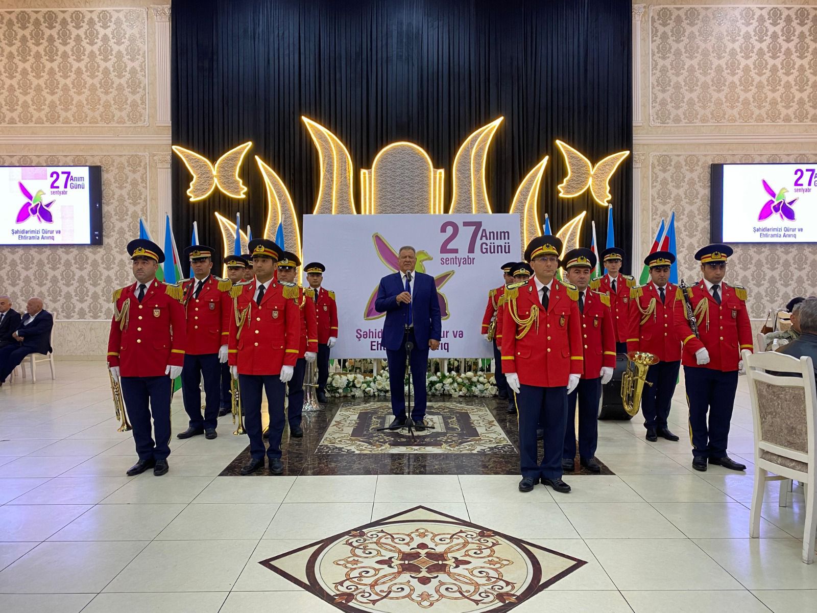 Tədbir Respublikanın Əməkdar artisti Ağalar Bayramov tərəfindən açıq elan edilib və Müdafiə Nazirliyinin Nümunəvi Hərbi Orkestrinin müşayəti ilə Azərbaycan Respublikasının Dövlət himni səsləndirilib.