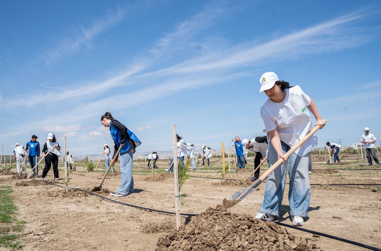 Ağacəkmə aksiyasında Müşfiqabad qəsəbəsində meşə massivi ərazisində Abşeron yarımadasının torpaq-iqlim şəraitinə uyğun Eldar şamı və zeytun ağacları əkilib.