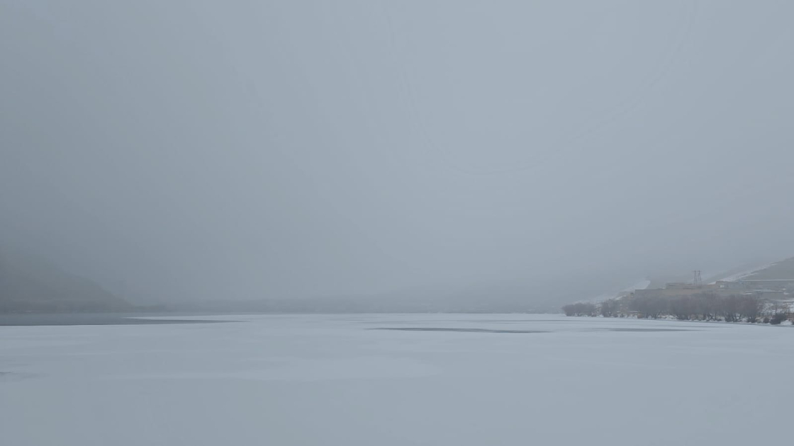 Sərt keçən qış fəsli və temperaturun kəskin aşağı düşməsi nəticəsində Şərur rayonunda yerləşən Arpaçay su anbarının səthi donub.