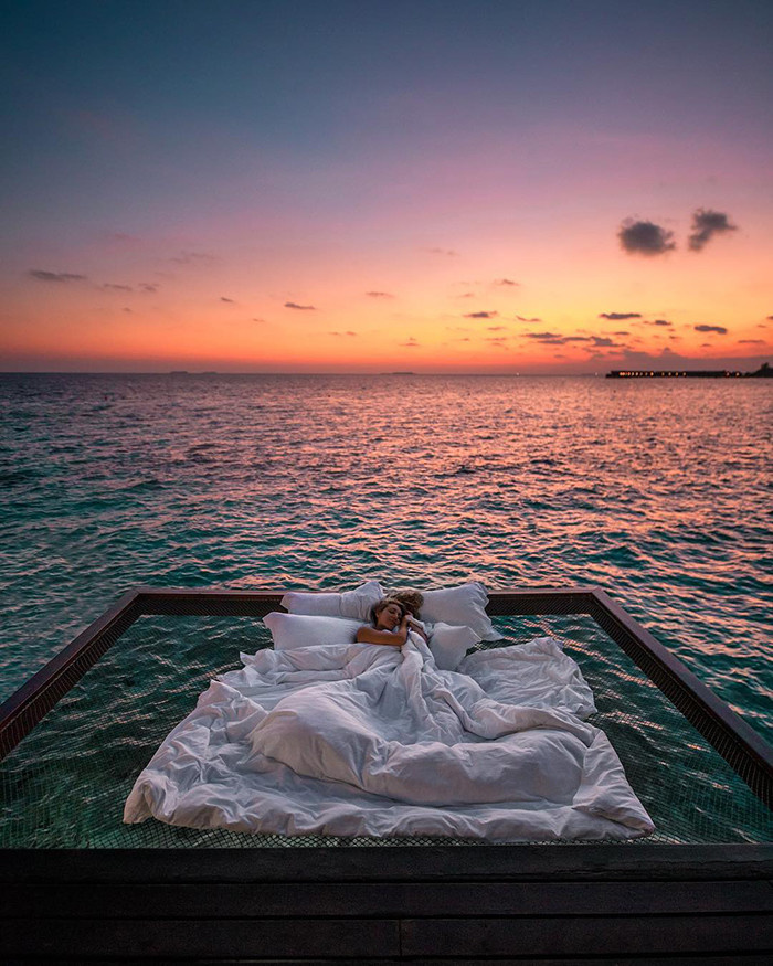 “Qafqazinfo” xəbər verir ki, kurorta dincəlməyə gələnlər yuxuya aşağıda okean, yuxarıda isə açıq səma altında gedə bilirlər. Ənənəvi yataq otaqlarından fərqli olaraq, burada otellərin dəmir çarpayıları birbaşa okean üzərində yerləşir.