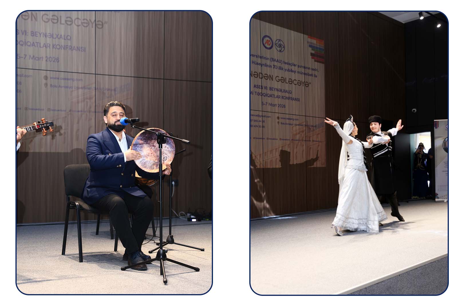 Konfrans Akademik Nizami Cəfərovun, Professor Nazim Cəfərlinin, Dosent Aqil Şahmuradovun, Dosent Lokman Zor-un, BAAU-nun Elmi işlər üzrə prorektoru, professor Gülzar İbrahimovanın və Dosent Əlövsət Allahverdiyevin dəyərli çıxışları və bədii-musiqili proqramla davam edib.