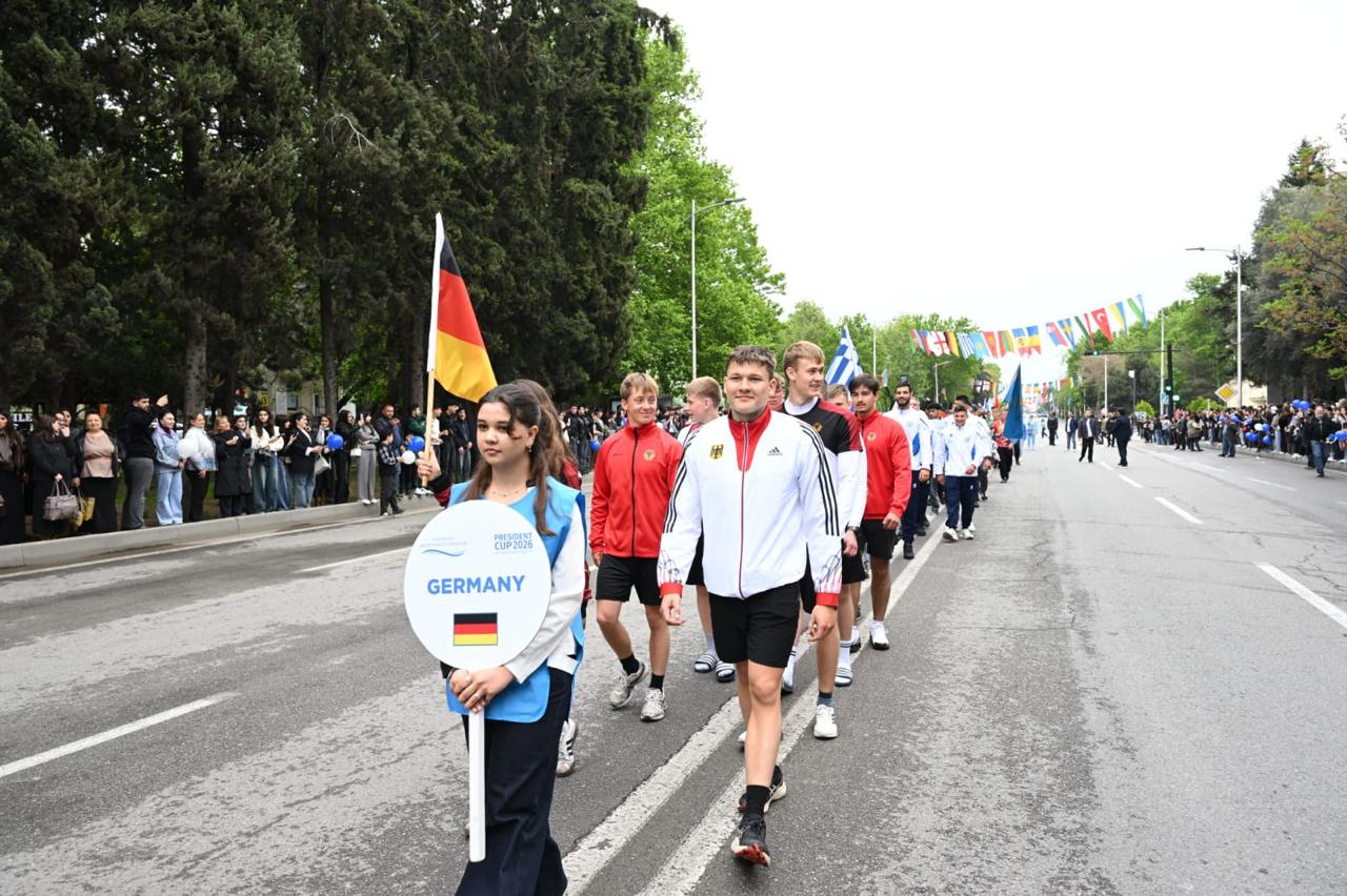 Ardınca reqatada iştirak edən ölkələrin təntənəli yürüşü baş tutub. Komandalar düzüldükdən sonra Azərbaycanın Dövlət Himni səsləndirilib. “Prezident Kuboku 2026” haqqında ümumi məlumat verilib.