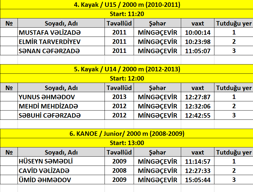 Gənclər və İdman Nazirliyi ilə Azərbaycan Kanoe və Avarçəkmə Federasiyasının birgə təşkilatçılığı əsasında Azərbaycan birinciliyi keçirilib.