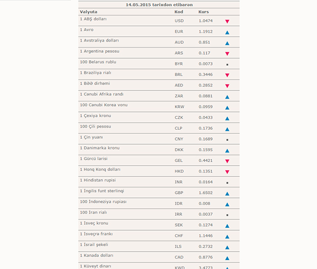 Qeyd edək ki, fevralın 21-dən Mərkəzi Bankın yeni qərarı ilə dolların məzənnəsi 1,05 manat olub, avronun məzənnəsi isə 1,1950 təşkil edir.