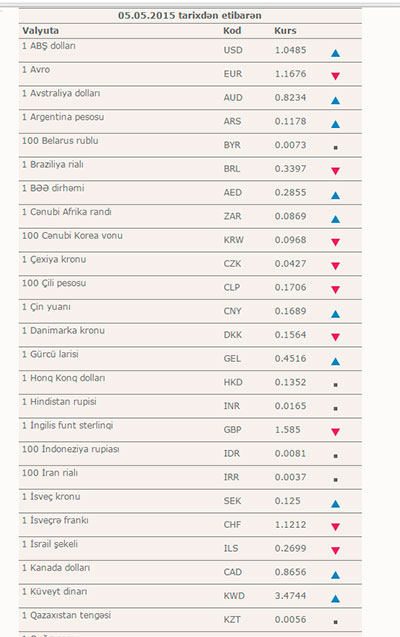 Qeyd edək ki, fevralın 21-dən Mərkəzi Bankın yeni qərarı ilə dolların məzənnəsi 1,05 manat olub, avronun məzənnəsi isə 1,1950 təşkil edib.