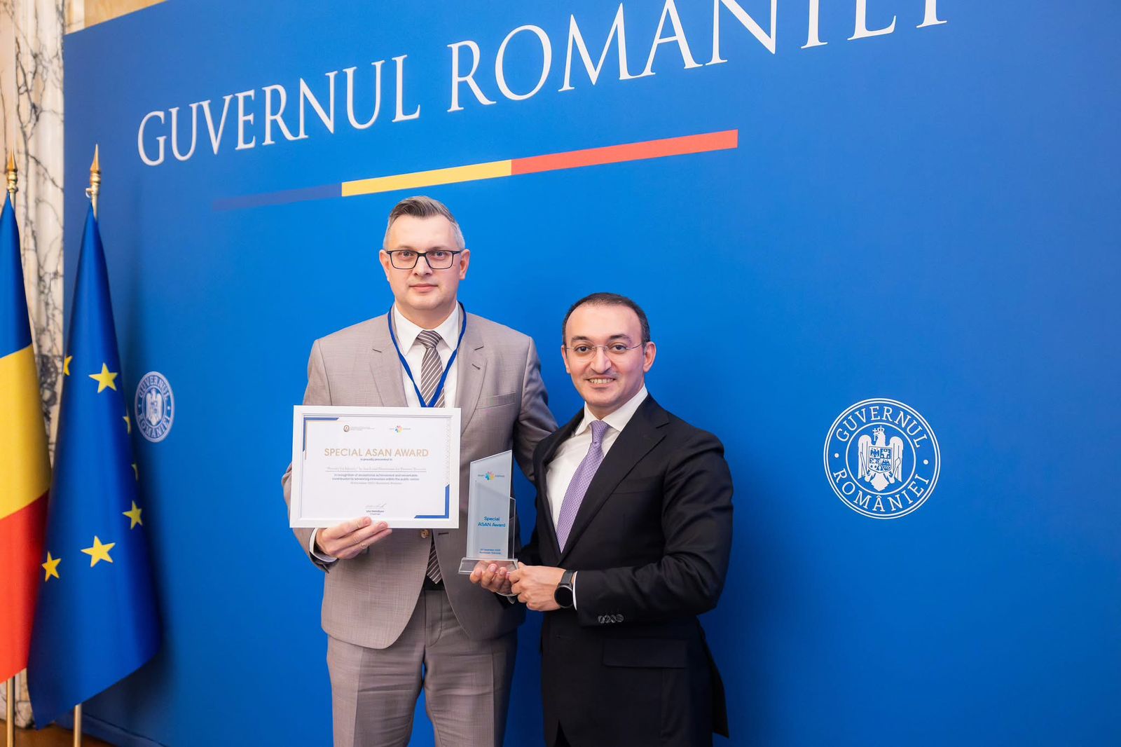 “ASAN xidmət” Rumıniya Hökumətinin təşəbbüsü və dəvəti ilə bu ölkədə dövlət xidmətləri sahəsində həyata keçirilmiş layihələrin cari il üzrə qiymətləndirilməsində və mükafatlandırılmasında iştirak edib. “ASAN xidmət” modelinin dövlət xidmətləri sahəsində innovasiyaların və rəqəmsal həllərin tətbiqi ilə əldə etdiyi qabaqcıl nailiyyətlərinə istinad edilərək müsabiqənin qaliblərindən biri Dövlət Agentliyi tərəfindən seçilib və qalibə xüsusi olaraq təsis olunmuş “ASAN" mükafatı təqdim olunub.
