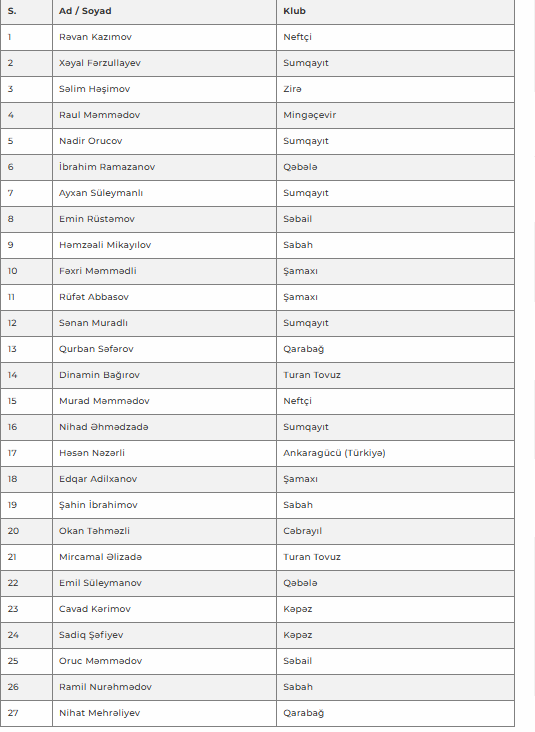 Yığmanın yeni baş məşqçisi Ayxan Abbasov toplanış üçün 27 futbolçuya dəvət göndərib.