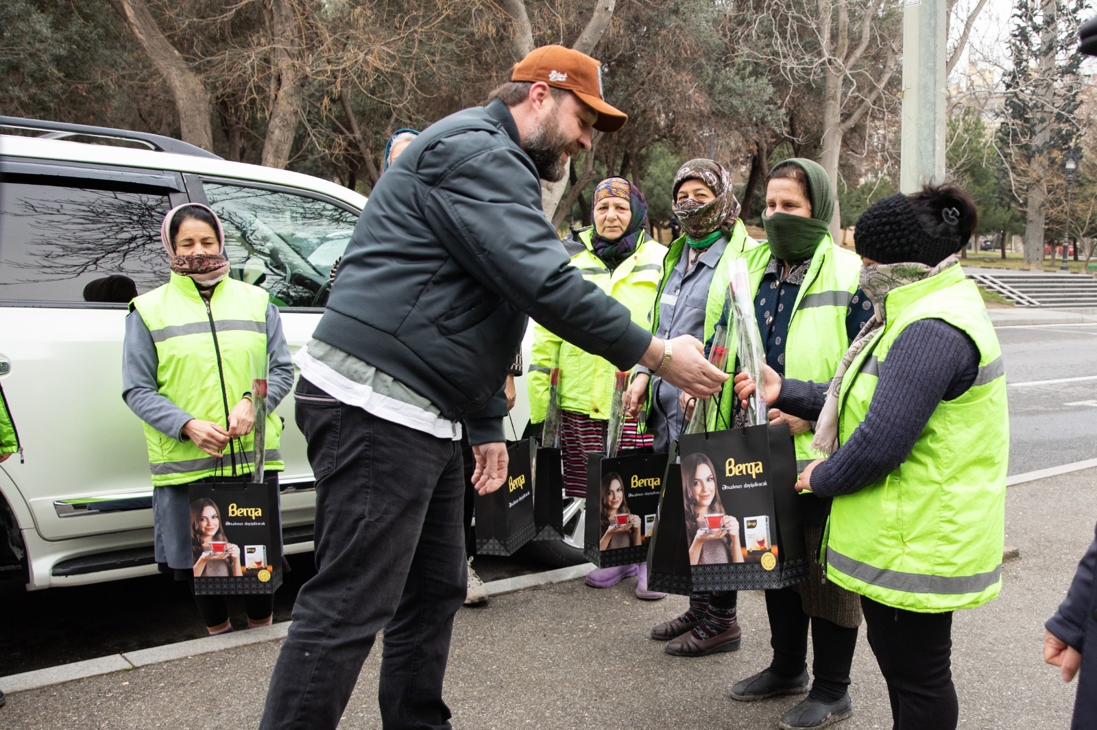 “Qafqazinfo” xəbər verir ki, adıçəkilən marka məşhur aktyor Azər Aydəmirlə bərabər Bakının müxtəlif istiqamətlərində şəhərin təmizliyinin təmin edilməsində əziyyət çəkən xanımlara hədiyyələr veriblər.