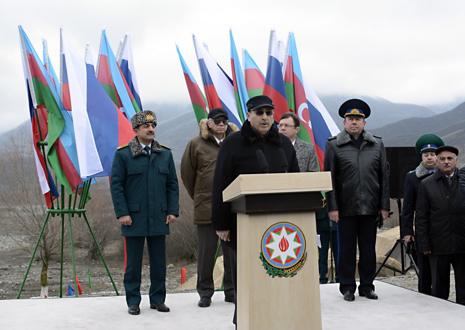 Azərbaycan-Rusiya dövlət sərhədində ilk sərhəd nişanı quraşdırıldıqdan sonra Dövlət Sərhəd Xidmətinin rəisi, general-polkovnik Elçin Quliyev mərasimdə çıxış edib. O qeyd edib ki, həmsərhəd ölkələr arasında ilk olaraq Azərbaycan-Rusiya dövlət sərhədinin müəyyənləşdirilməsi prosesinə 1996-cı ildə start verilib və 14 illik birgə fəaliyyət uğurla yekunlaşdırılaraq 2010-cu il sentyabrın 3-də “Azərbaycan Respublikası və Rusiya Federasiyası arasında dövlət sərhədi haqqında” dövlətlərarası müqavilə imzalanıb.