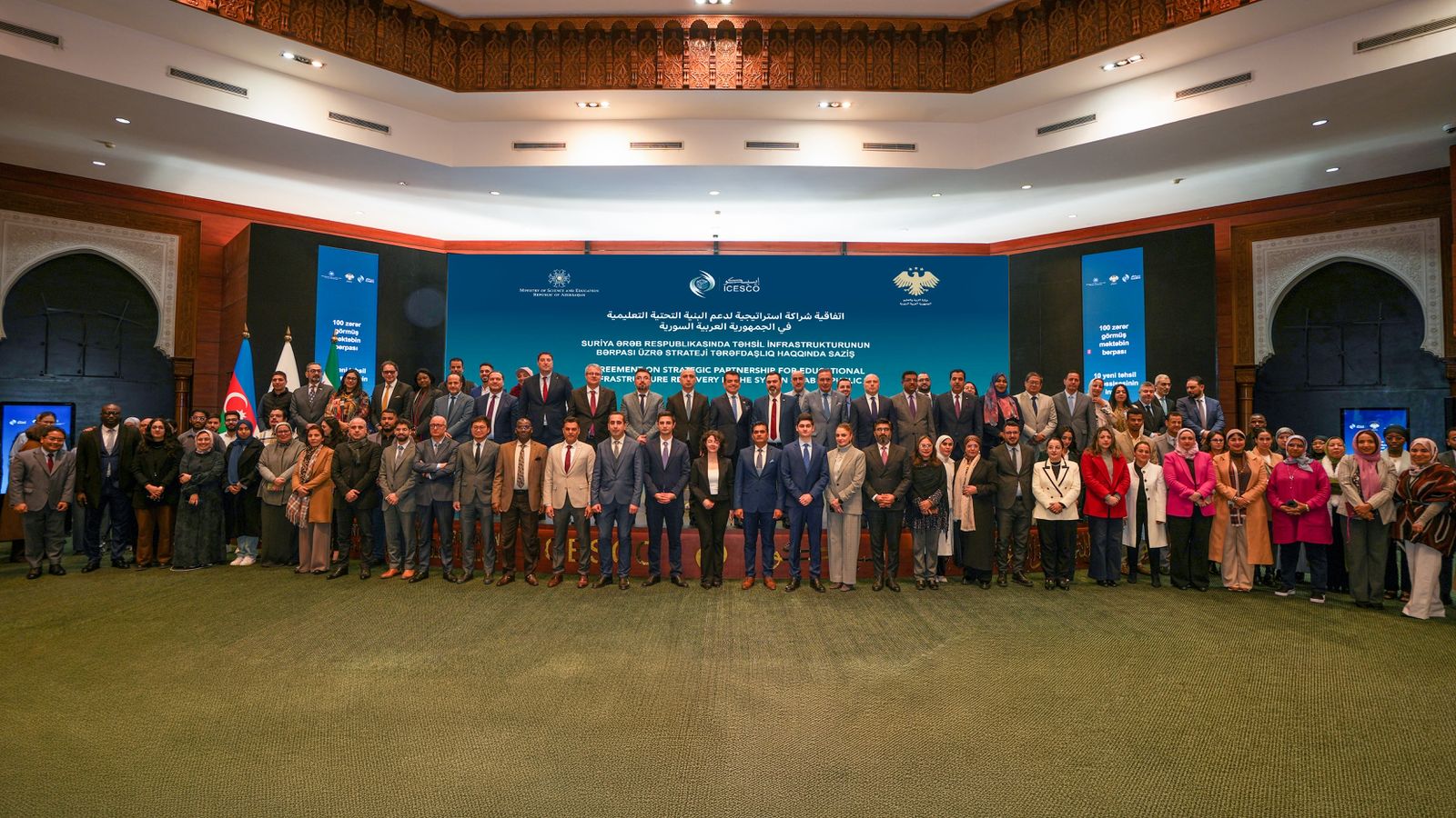Fevralın 17-də İslam Dünyası Təhsil, Elm və Mədəniyyət Təşkilatının (ICESCO) Rabat şəhərində yerləşən Baş qərargahında Azərbaycanın elm və təhsil naziri Emin Əmrullayev, Suriyanın təhsil naziri Dr. Mohammed Abdulrahman Turko və ICESCO-nun Baş direktoru Dr. Salim bin Məhəmməd əl-Malikin iştirakı ilə “Azərbaycan Respublikasının Elm və Təhsil Nazirliyi, Suriya Ərəb Respublikasının Təhsil Nazirliyi və İslam Dünyası Təhsil, Elm və Mədəniyyət Təşkilatı arasında Suriya Ərəb Respublikasında təhsil infrastrukturunun bərpası üzrə strateji tərəfdaşlıq haqqında Saziş” imzalanıb.