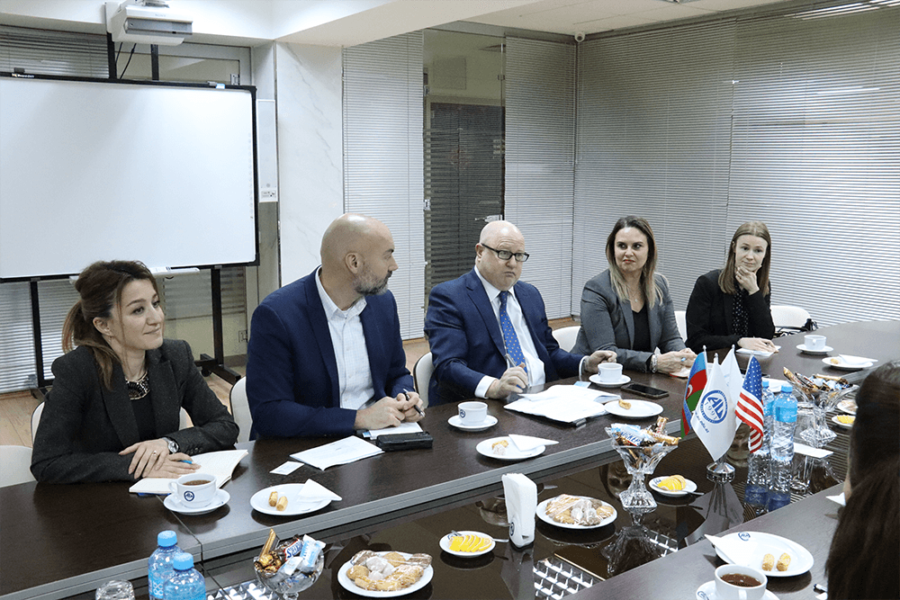 ABŞ Dövlət Departamentinin Regional İngilis Dili Ofisinin (Regional English Language Office - RELO) rəhbəri John Silver, ofisin mütəxəssisi Aycan Yaman, Təhsil və mədəniyyət məsələləri bürosunun əməkdaşı Cora Mantzke Bakıya səfərləri çərçivəsində Azərbaycan Universitetini ziyarət ediblər.