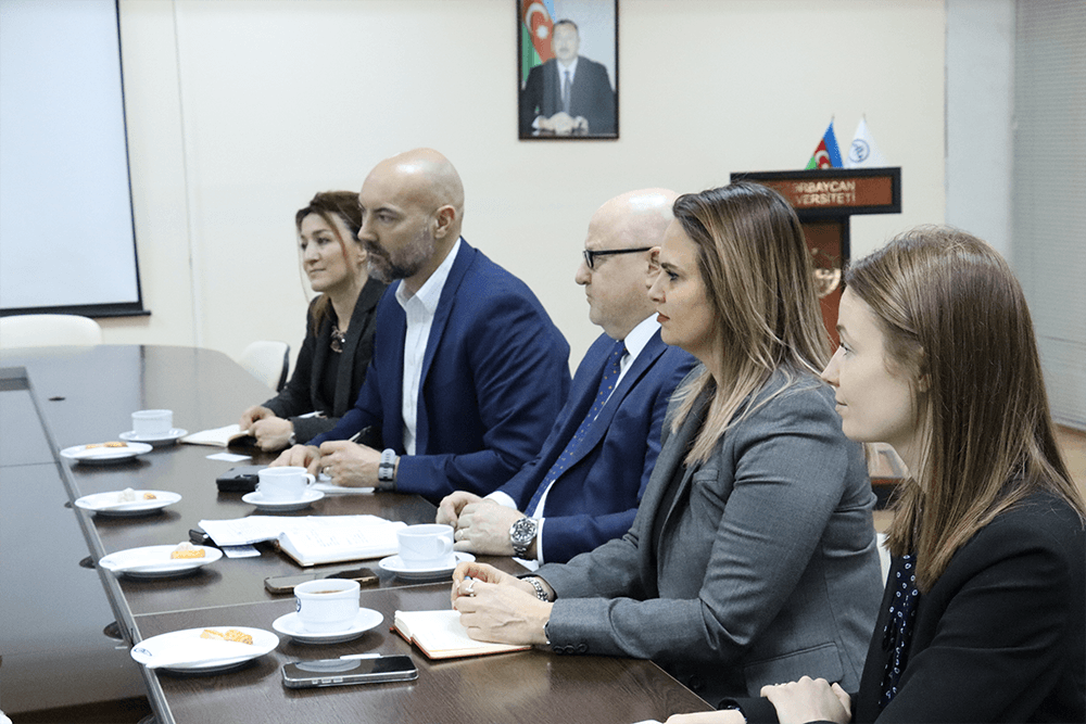 Azərbaycan Universitetinin rektoru Səadət Əliyeva qonaqlara rəhbərlik etdiyi ali təhsil müəssisəsinin tarixi, tədrisi aparılan ixtisaslar, universitetin beynəlxalq əlaqələri, prioritetləri və stratejik hədəfləri haqqında məlumat verib. Rektor qeyd edib ki, beynəlmiləlləşmə universitetin inkişaf strategiyasının əsas istiqamətlərindən biridir. Azərbaycan Universiteti fəaliyyətinin bütün istiqamətlərində müasir çağırışları və akademik keyfiyyət standartlarını əsas götürərək fəaliyyətini sistemli şəkildə qurur.