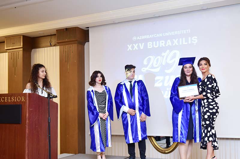 Azərbaycan Universitetinin 2018/2019-cu tədris ili məzunlarına həsr olunmuş XXV buraxılış Məzun Günü “Excelsior Hotel&Spa Baku”da keçirilib. Tədbirdə universitet rəhbərliyi, professor-müəllim heyəti, məzunlar və valideynlər iştirak ediblər.