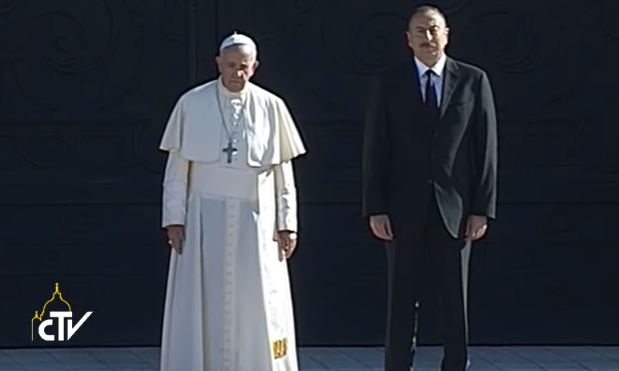 Prezident İlham Əliyev deyib: “Sizi Azərbaycanda salamlamaqdan məmnunluq duyuram. Sizin Azərbaycana səfəriniz tarixi bir səfərdir. Çox minnətdaram ki, mənim dəvətimi qəbul edib Azərbaycana səfər etmisiniz. Ümid edirəm ki, siz vətənə xoş təəssüratlarla dönəcəksiniz. Sizin bu səfəriniz Vatikan-Azərbaycan əlaqələri üçün, eyni zamanda sivilizasiyalararası dialoqu üçün çox əhəmiyyətlidir”.
