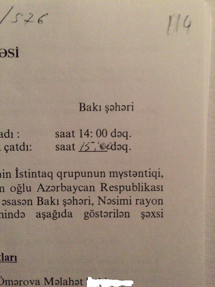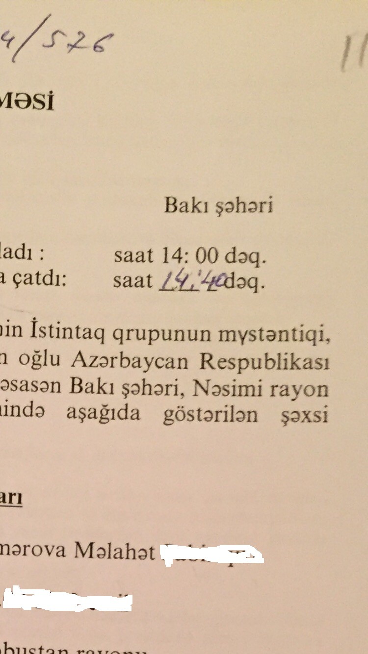Zərərçəkən Azər Məmmədovun hüquqi varisinin nümayəndəsi Samir İsayev bildirib ki, müdafiə tərəfi ibtidai istintaqda saat məsələsinin dəyişdirilməsi barədə vəsatət ötən məhkəmə iclasında səsləndirilib: "Artıq bundan sonra pozuntunun dəyişdirilməsi ittiham tərəfi və zərərçəkənlər üçün maraqlı deyil. Yalnız təqsirləndirilən şəxslər bunda maraqlı ola bilərdi".